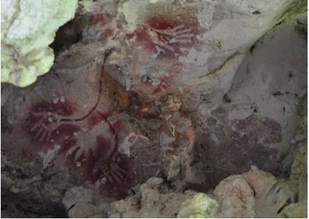 Bukti peninggalan sejarah di gua Bloyot (Cap tangan dan fauna )