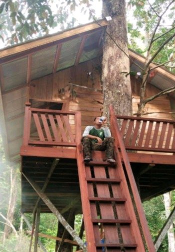 Bergeser ke belakang rumah gazebo terlihat pemandangan gugusan bukit karst sangkulirang-Mangkaliat. Rumah pohon yang jauh di tengah Rimba, berdiri gagah di antara dua buah pohon Ulin. Pengunjung bisa menikmati pemandangan yang sejuk dan indah dari atas rumah gazebo ini.