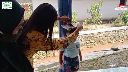 Pengukuran tinggi badan pada anak balita oleh kader posyandu anggrek.