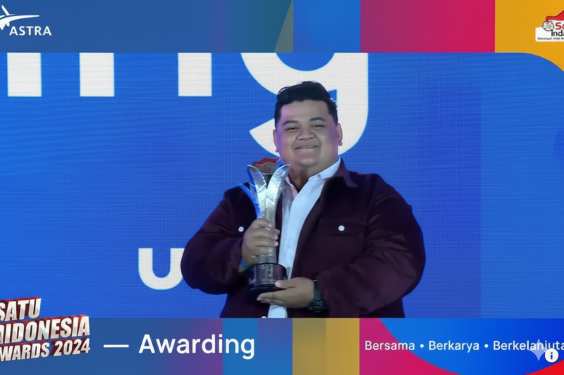 Potret Kevin Gani saat menerima apresiasi SATU Indonesia Awards 2024.