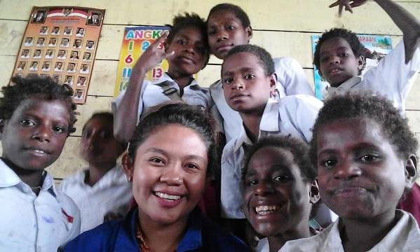 Potret kebersamaan Diana Cristiana Dacosta Ati bersama anak didiknya di Papua